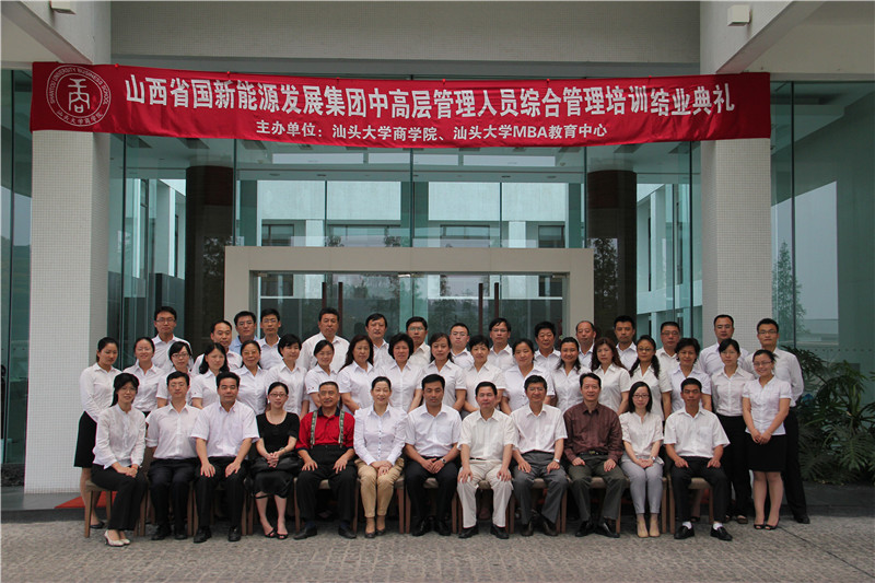 由汕头大学商学院、汕头大学MBA教育中心联合主办的“山西国新能源发展集团中高层管理人员综合管理培训”结业典礼在汕头大学学术交流中心顺利举行