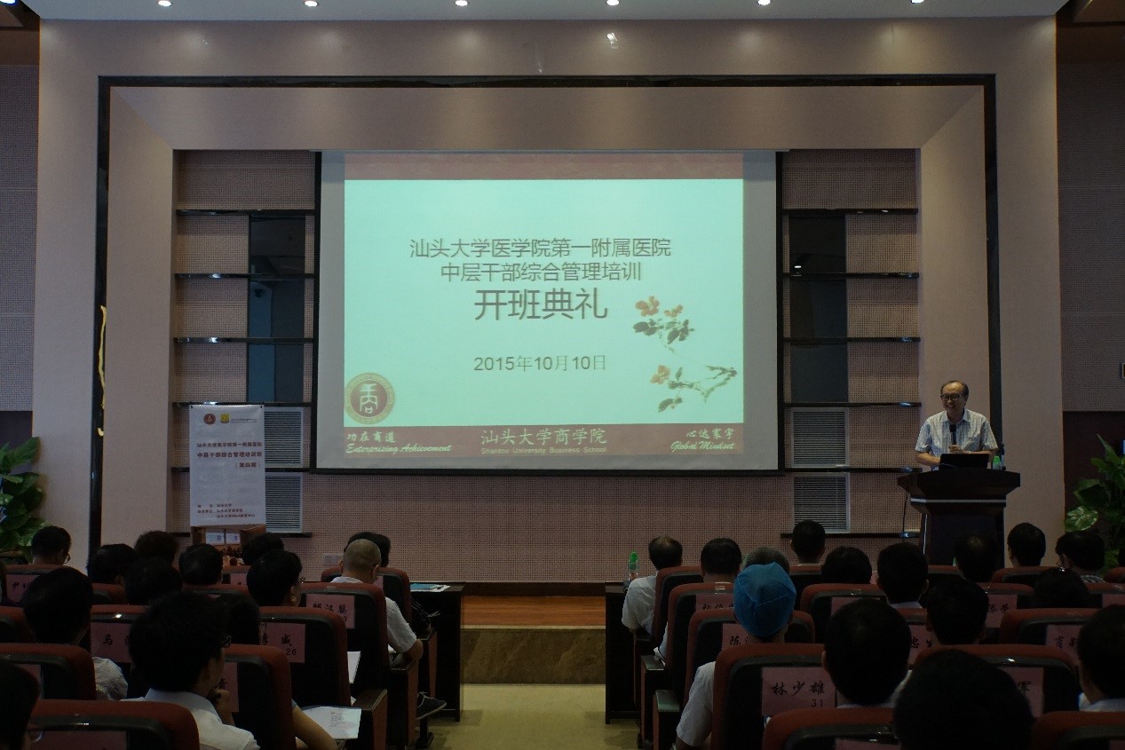 2015年10月10日,汕头大学医学院第一附属医院中层干部综合管理培训(第四期)开班典礼在汕头大学医学院第一附属医院第二学术报告厅顺利举行。
